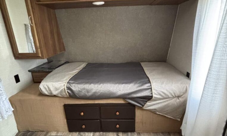 Plus Taxes & LicensingThis Travel trailer was converted into a Mother-in-law trailer to keep her close by, but the plan never came to fruition. Deep-cleaned top to bottom, and redecorated with new pull-down shades and curtains, you can make this space your new she-shed in the backyard, and still take it camping on the weekend. Everything works great, the bedroom was remodeled to fit a single person with one twin bed.